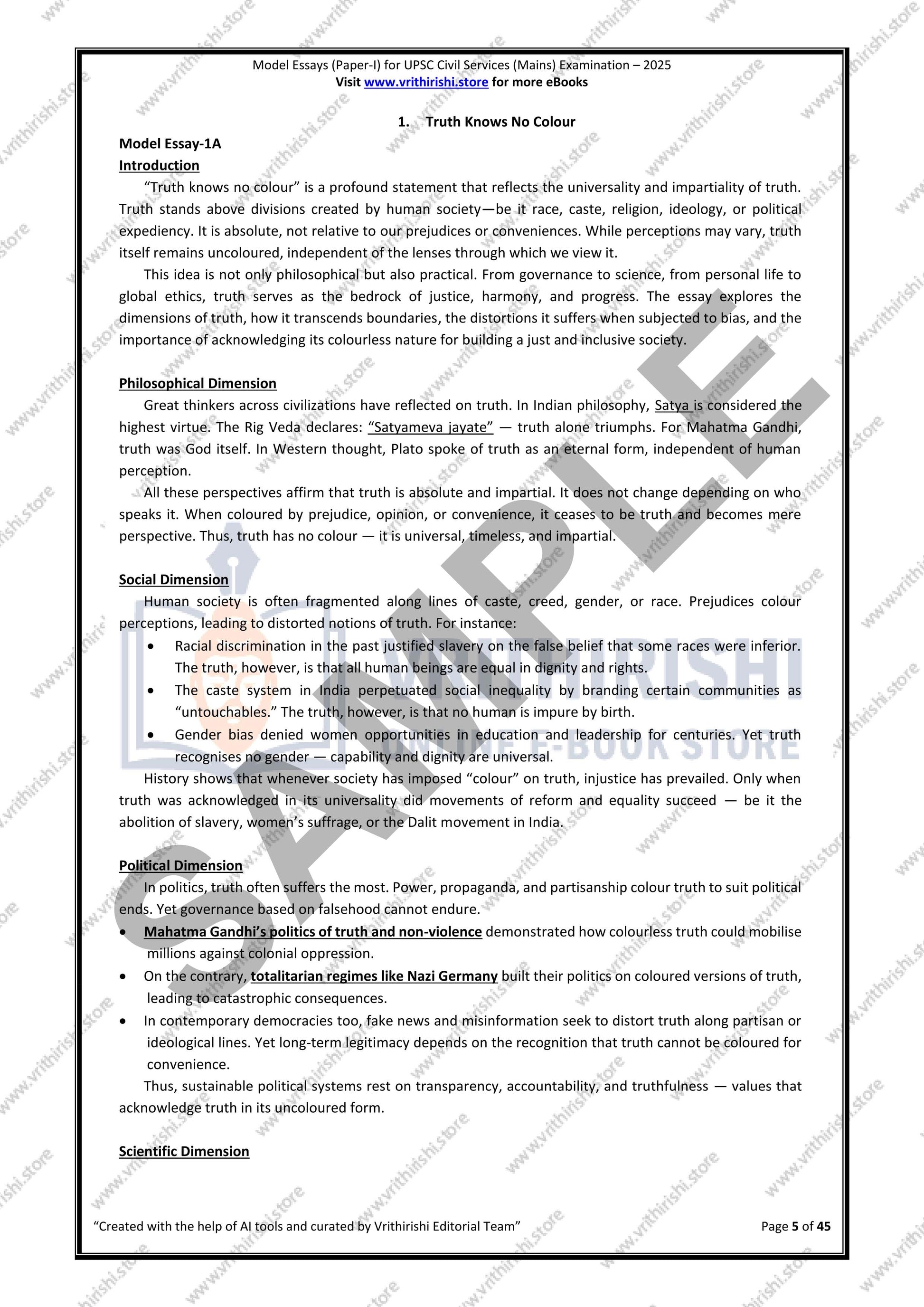 UPSC model answers Civils (Mains) 2025 - Paper-I (Essay)